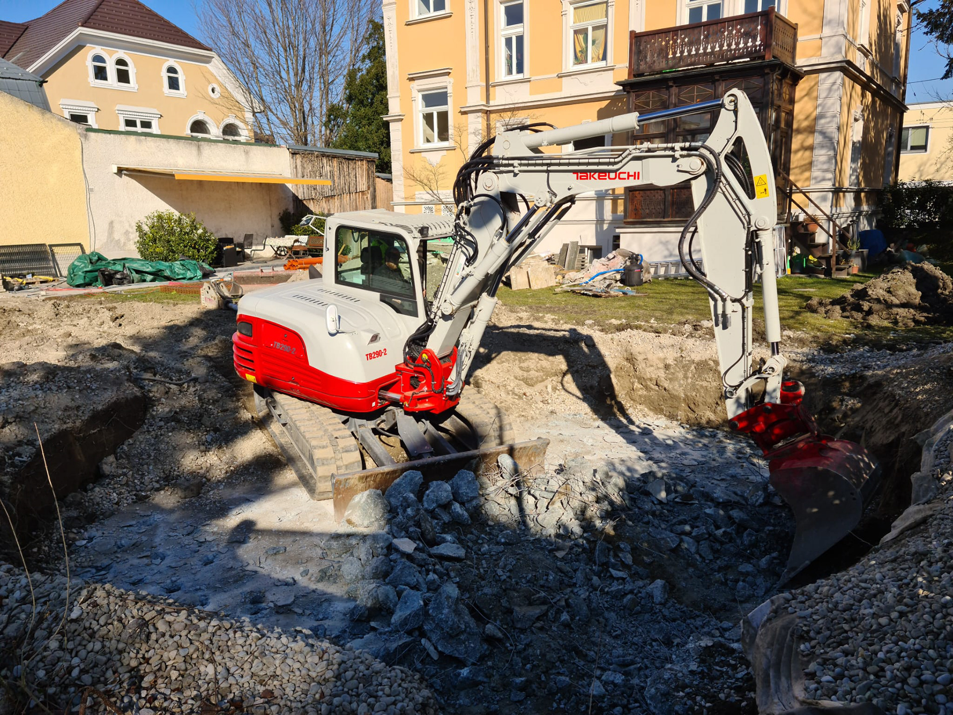 Oft stehen befestigte Flächen, alte Gartenhäuser oder ganze Gebäude einem neuen Bauprojekt im Wege. Wir reißen für Sie diverse Altlasten ab und entsorgen die anfallenden Materialien fachgerecht.