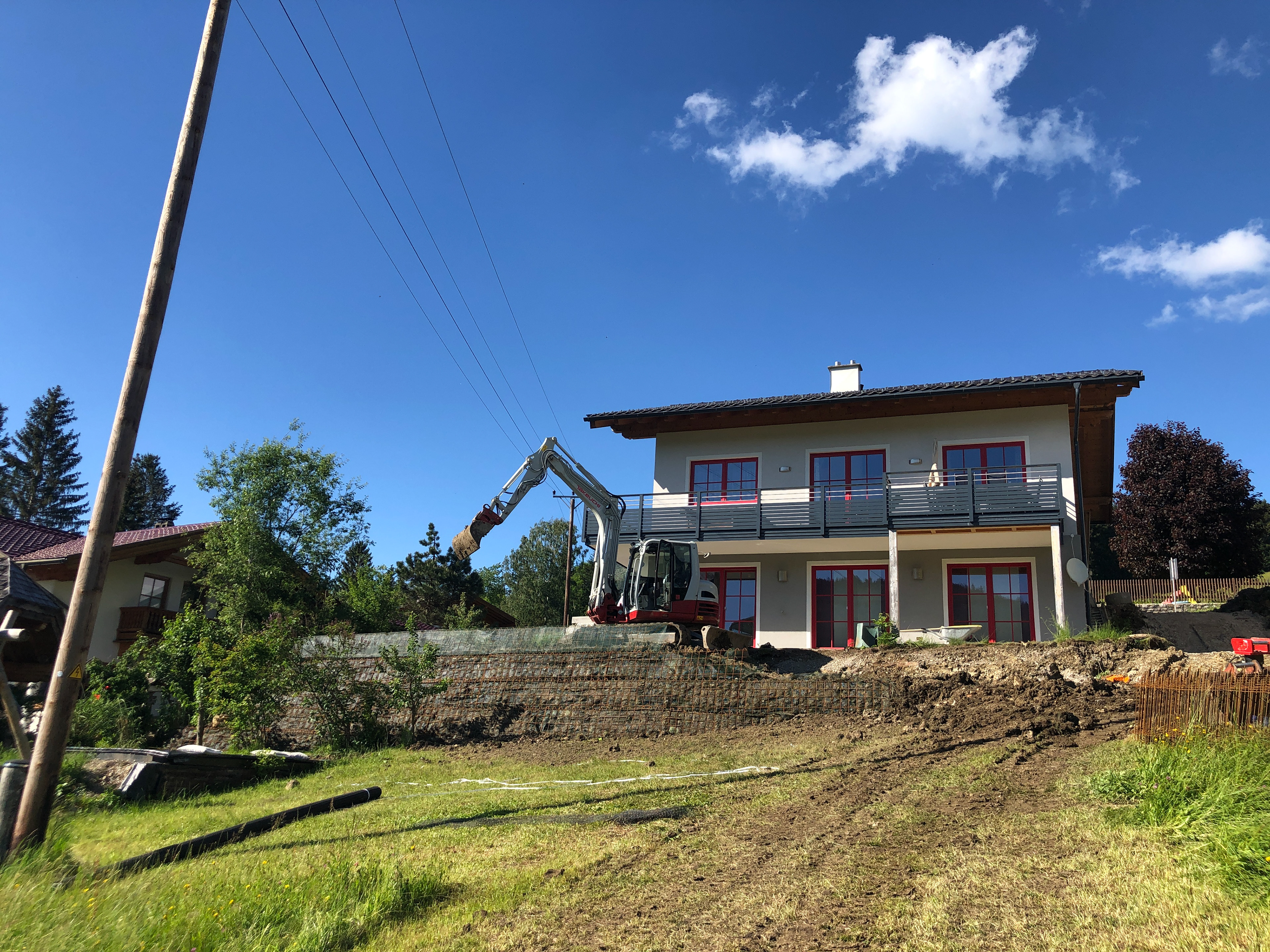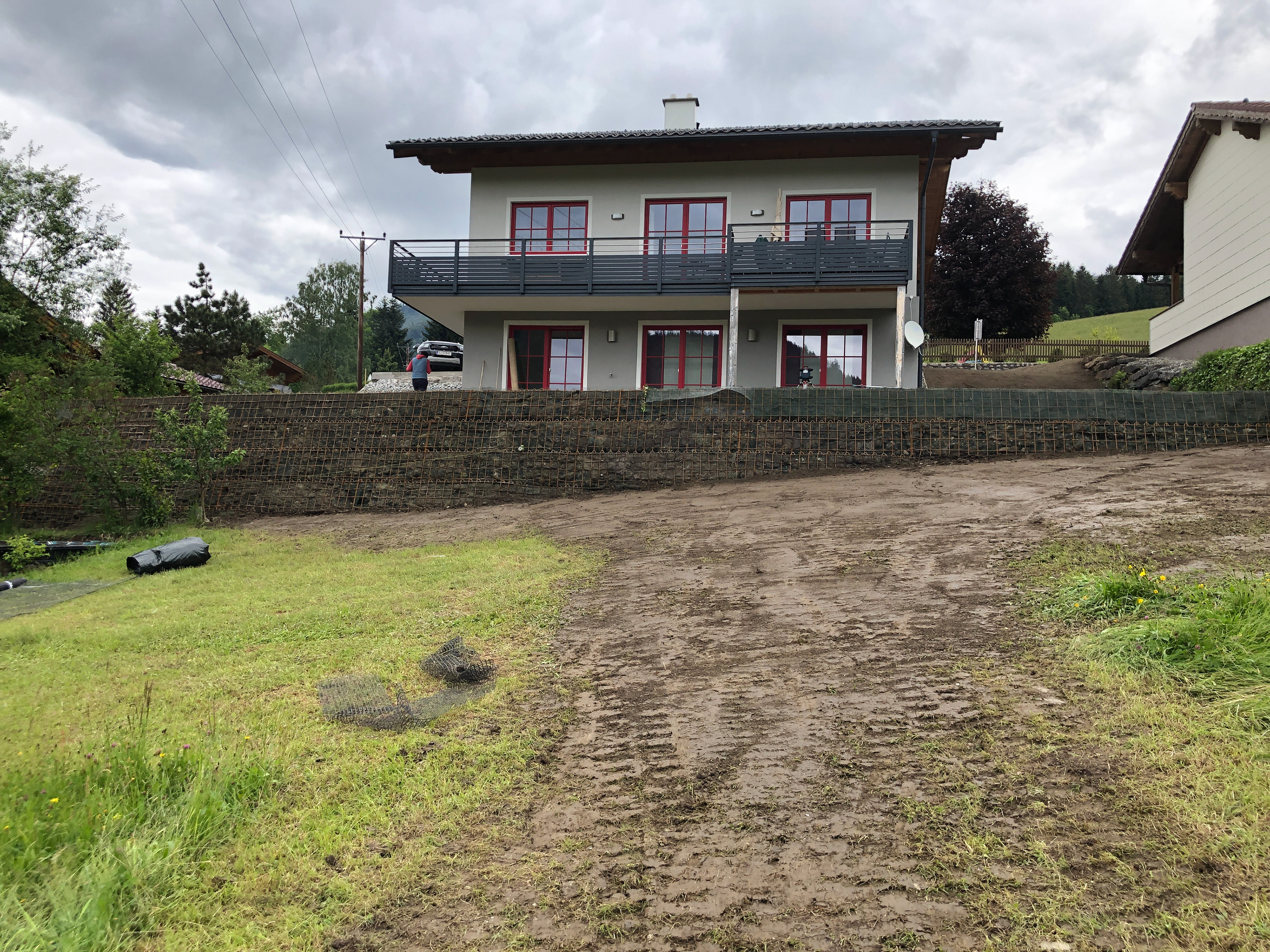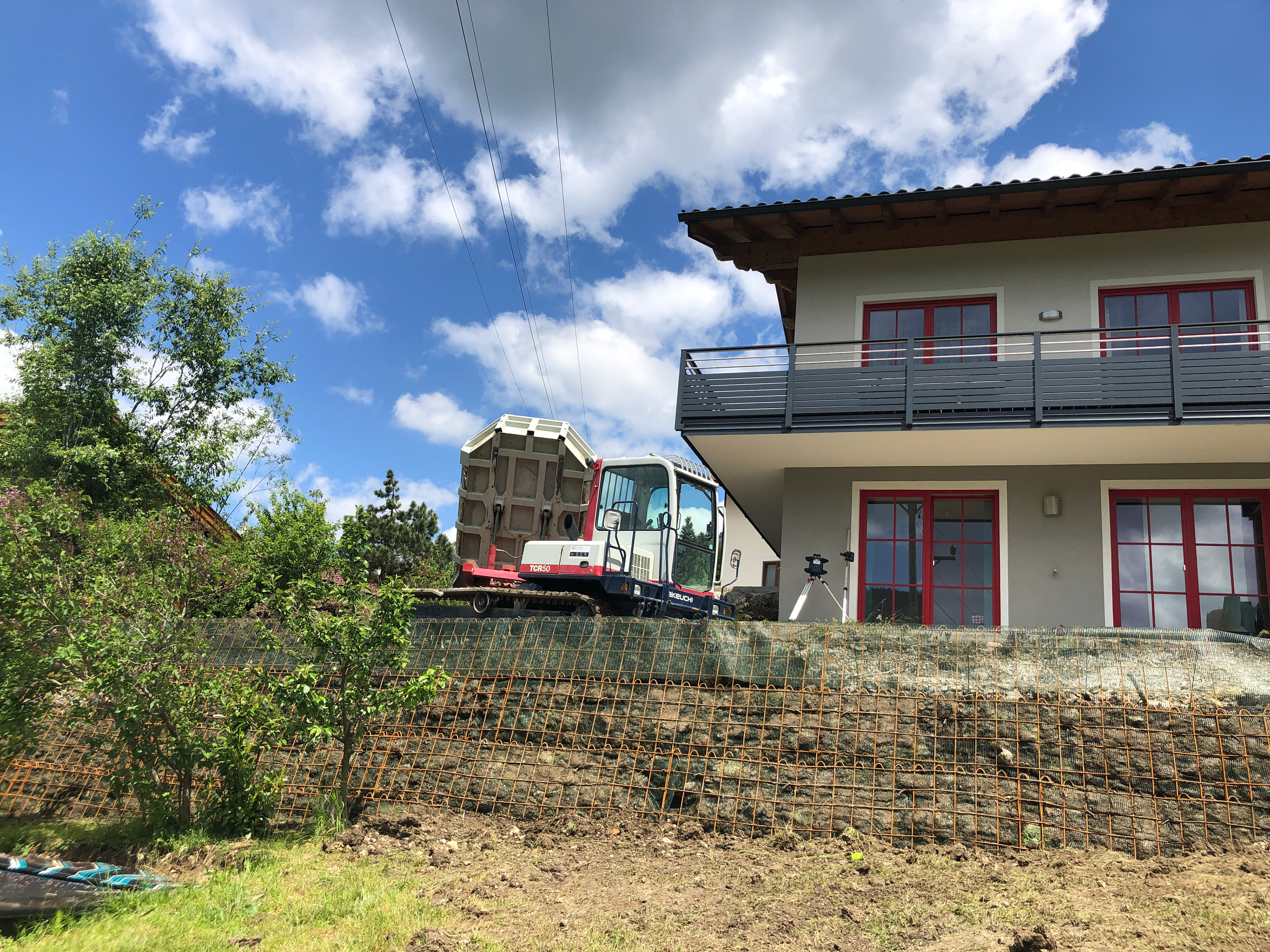 Begrünbare Steilböschungssysteme (Bewehrte Erde) sind eine sehr gute und kostengünstige Hangsicherungsalternative zur Steinschlichtung und kann fast überall zum Einsatz kommen, wo eine Hangsicherung benötigt wird. Gerne beraten wir Sie und finden gemeinsam die passende Lösung.