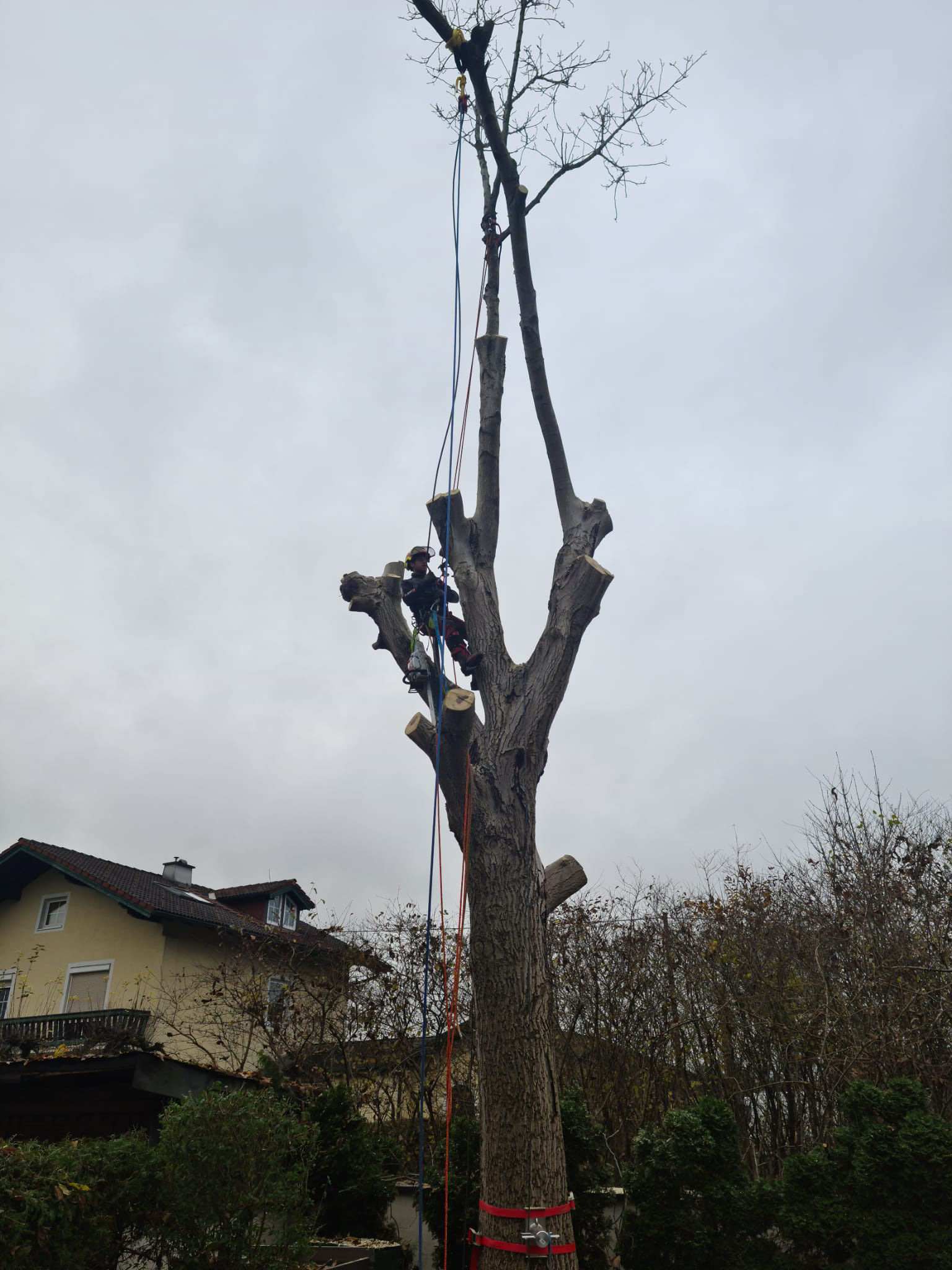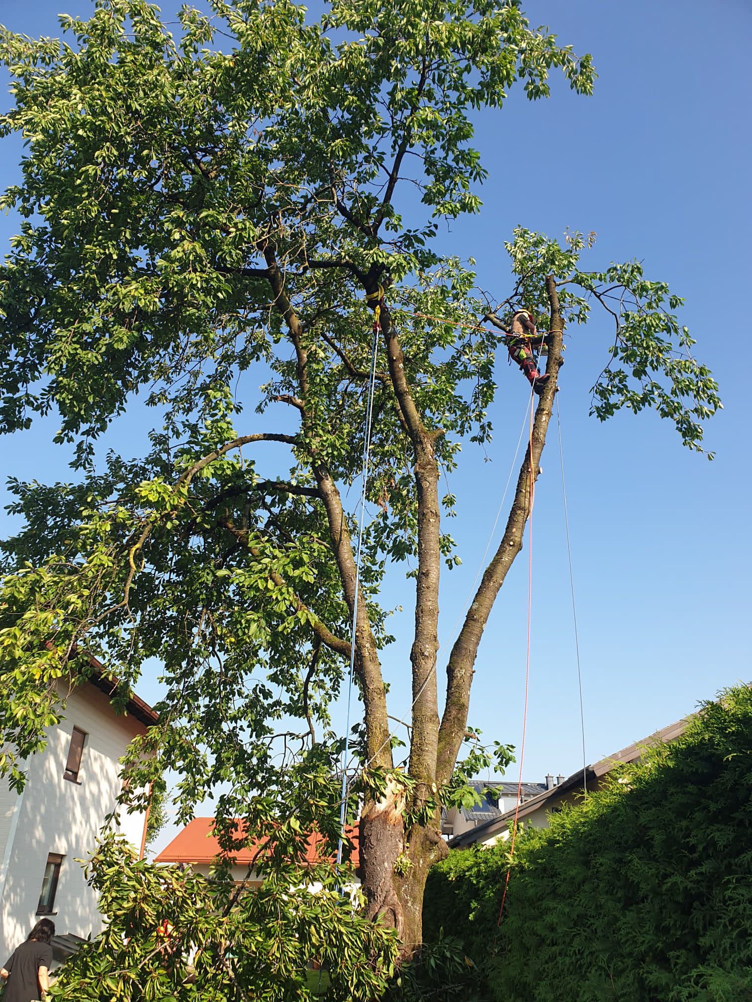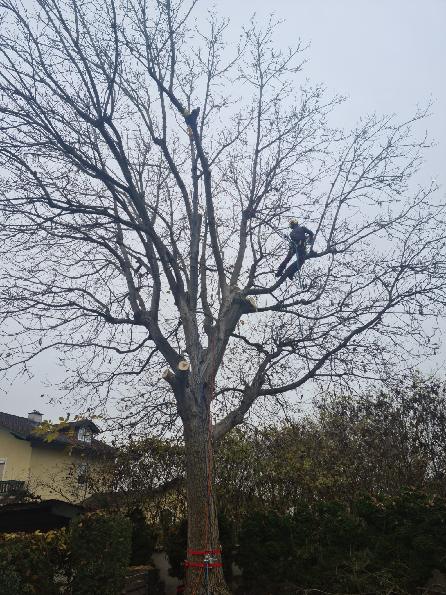 Neben normalen Rodungs- und Schlägerungsarbeiten bieten wir auch sogenannte ,,Spezialbaumfällungen”, mittels Hebebühne oder Klettertechnik, für besonders schwierige Baumfällungen an.