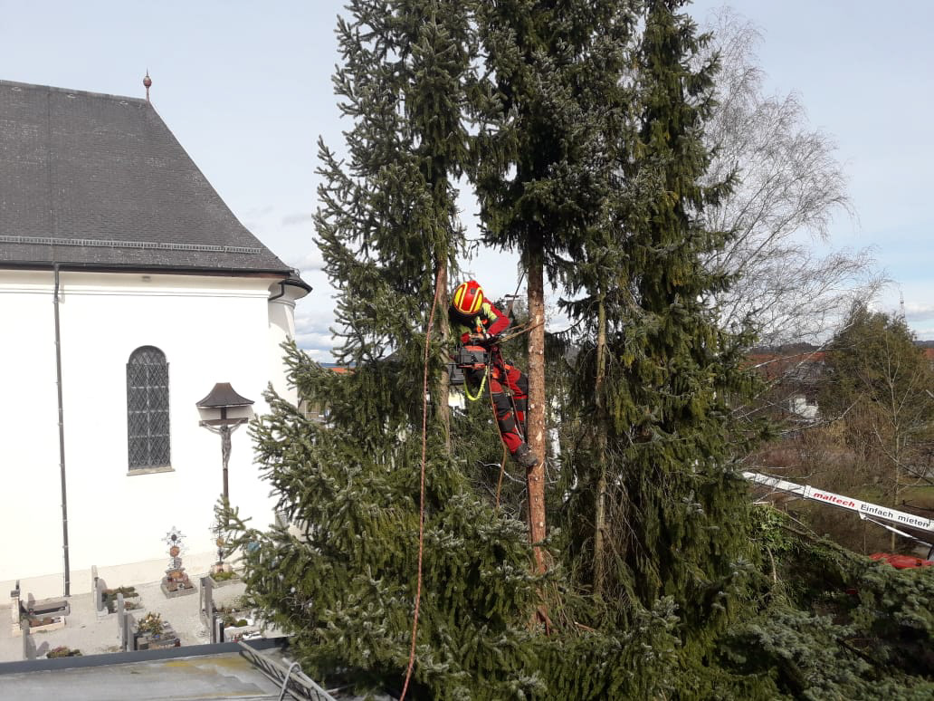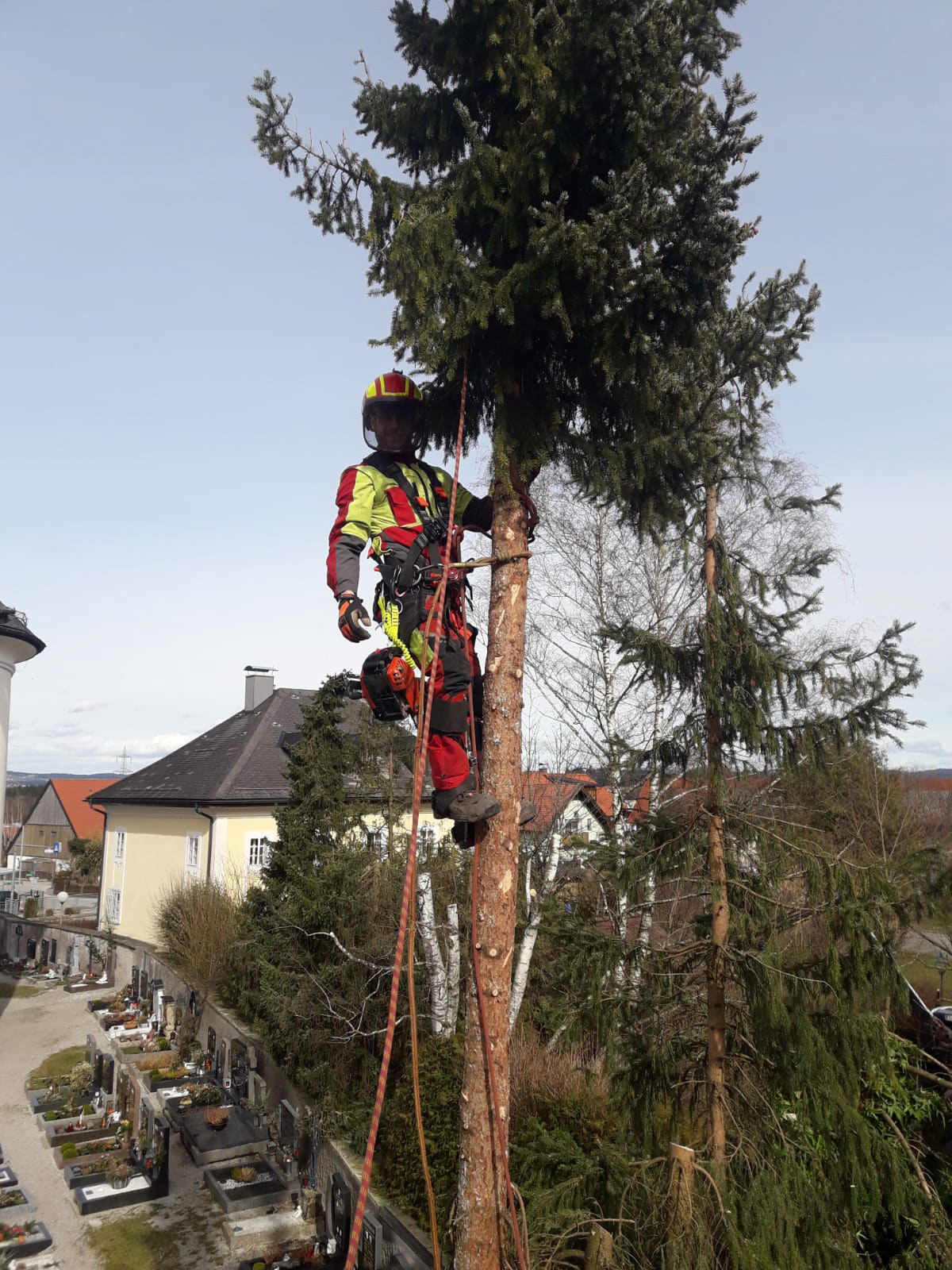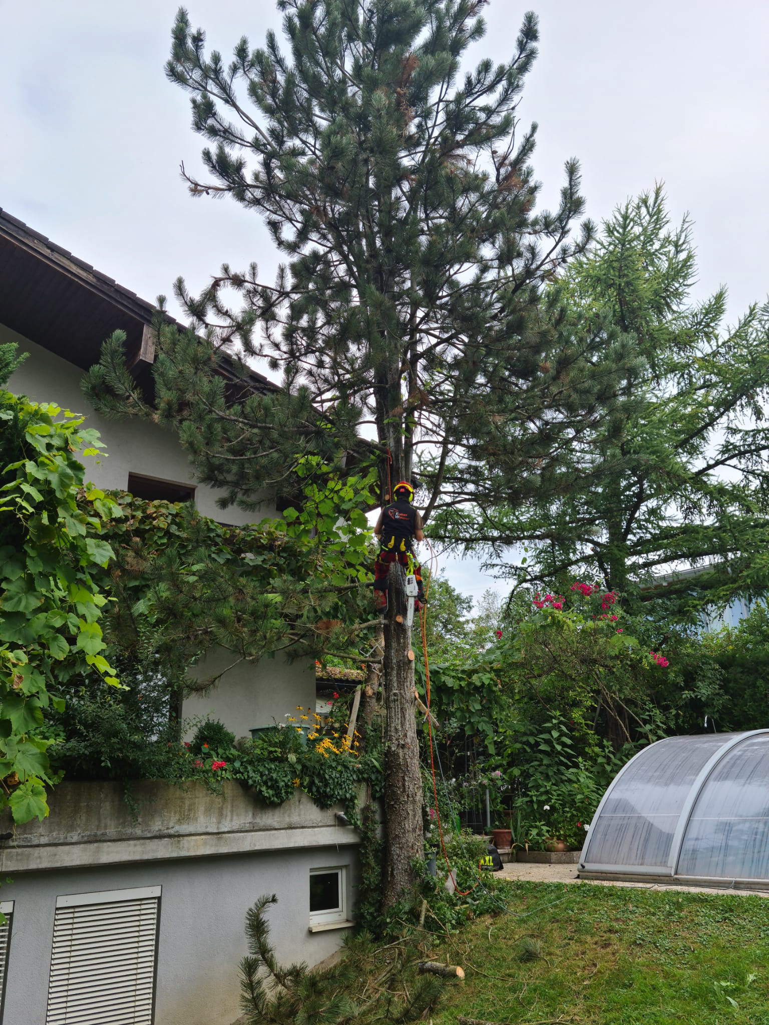 Neben normalen Rodungs- und Schlägerungsarbeiten bieten wir auch sogenannte ,,Spezialbaumfällungen”, mittels Hebebühne oder Klettertechnik, für besonders schwierige Baumfällungen an.